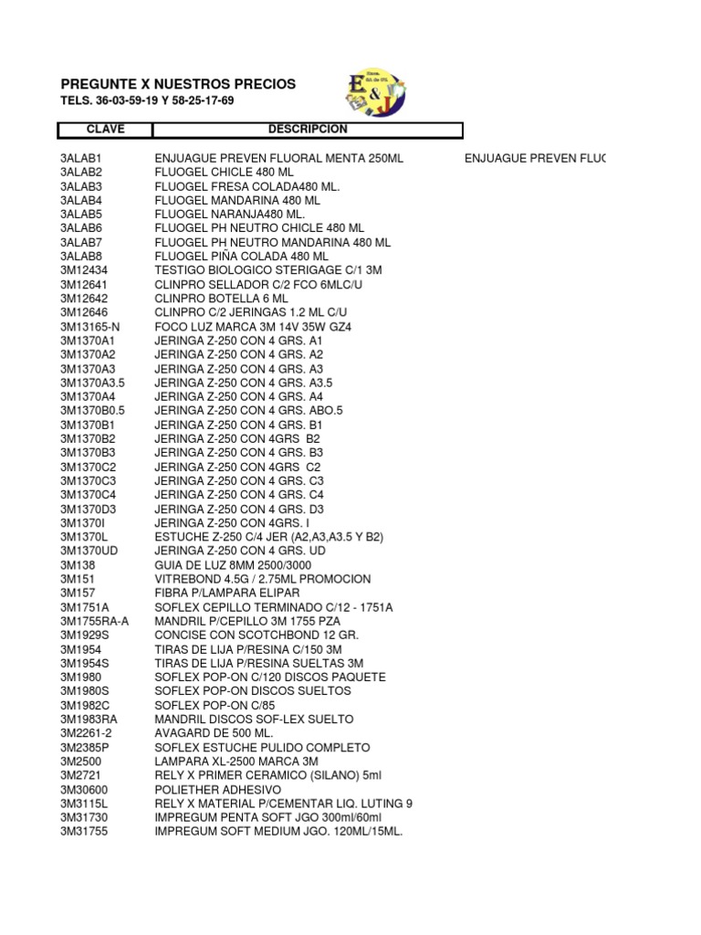 Lista De Materiales Consul To Rio Dental Pdf